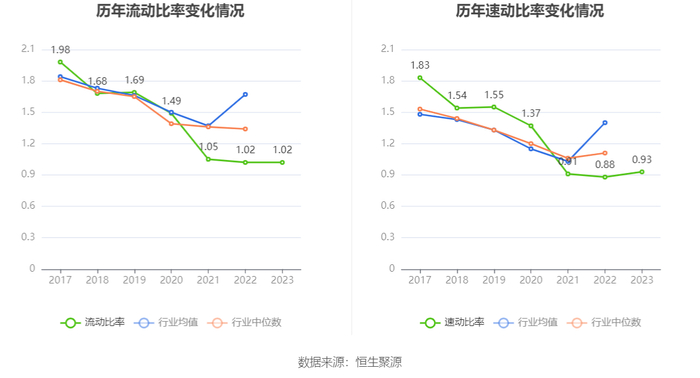 2023年,公司流动比率为1.02,速动比率为0.93。