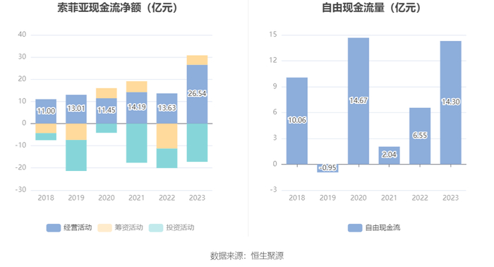 进一步统计发现,2023年公司自由现金流为14.30亿元,相比上年同期增长118.11%。