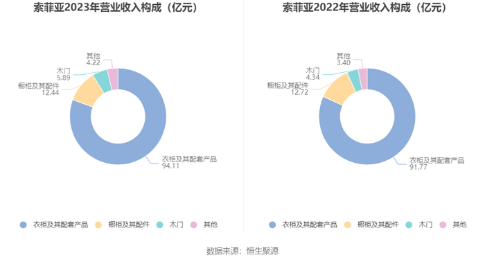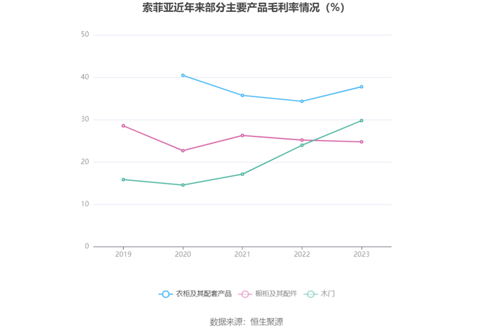 分产品看,衣柜及其配套产品、橱柜及其配件、木门2023年毛利率分别为37.75%、24.75%、29.77%。
