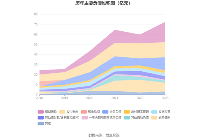负债重大变化方面,截至2023年年末,公司短期借款较上年末增加131.84%,占公司总资产比重上升6.66个百分点,主要系本期票据贴现,国内信用证福;合同负债较上年末增加86.12%,占公司总资产比重上升3.15个百分点,主要系3.15%主要是预收经销商货款增加;长期借款较上年末减少31.65%,占公司总资产比重下降4.57个百分点,主要系-4.57%主要是偿还借款;应付票据较上年末增加162.62%,占公司总资产比重上升0.63个百分点。