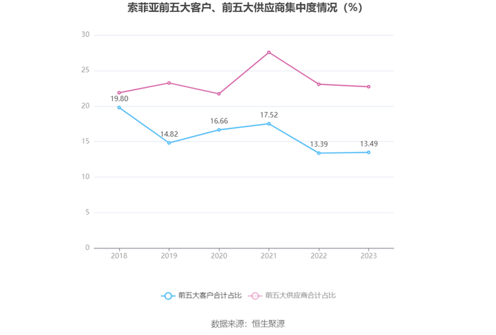 报告期内,公司前五大客户合计销售金额15.74亿元,占总销售金额比例为13.49%,公司前五名供应商合计采购金额13.26亿元,占年度采购总额比例为22.73%。