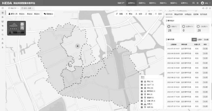 【平时】管理-风险监控、【战时】管理-分析、指挥、协同;通过融合水务生产、管网、客服等相关实时信息和应急预案、应急资源,用于对应急抢修现场的监控监管,避免出现安全事故。系统基于GIS地图进行人员定位,并接入现场视频监控,查看人员抢修情况。当应急人员到达现场后,值班室的人员可以远程监视现场作业情况,实现第三方的实时监管和现场指挥,包括对人、车、物信息全面掌控。