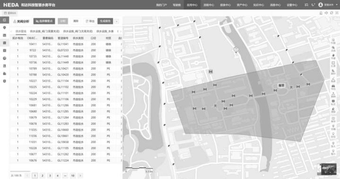 管网地理信息GIS系统,以地理信息GIS技术为核心、融合水务行业特点,为水务企业业务人员提供详尽的地图和管线资料,同时提供一系列管网GIS辅助操作分析工具。通过管网资产梳理及数据统一标准建立,为管网数据的浏览、查询、统计、资产管理等应用场景提供丰富、高效、便捷支撑,针对爆管等事故场景,可通过分析实现快速定位。同时,基于先进的SOA技术、GIS技术、通讯技术,系统可为分区计量、漏损分析等其他重要业务分支提供可靠的成果分享,提高供水企业的分析、决策和调度能力。