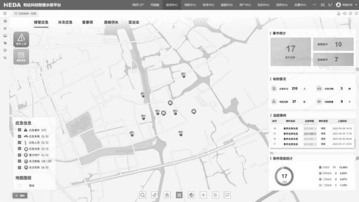 通过构建管理驾驶舱、报警中心、消息中心、流程中心、报表中心、视频中心、知识中心等,联通平台内各业务子系统,形成应用联动、业务协同、数据联通、场景支撑的智慧水务管理模式,实现水务业务一网通办、一网统管。