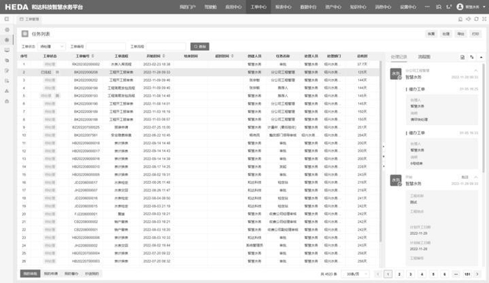 对客户在用水过程中关于水表或管道申报改装的业务相关的工程资料录入、查勘设计、出图会审、预决算、施工竣工、验收、结算、收款等实现全流程的动态管理,将用户报装整个流程透明化、公开化,以客户服务为中心,支持线上申报、线上缴费、电子合同、电子发票、电子证照功能,实现“用户零跑腿”和一网通办。整个报装业务实现由面到线再到点的全流程精细化管控,为管理决策形成数据支撑。