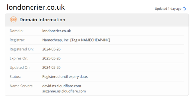 DNS信息显示London Crier在2024年3月26日刚注册成立。