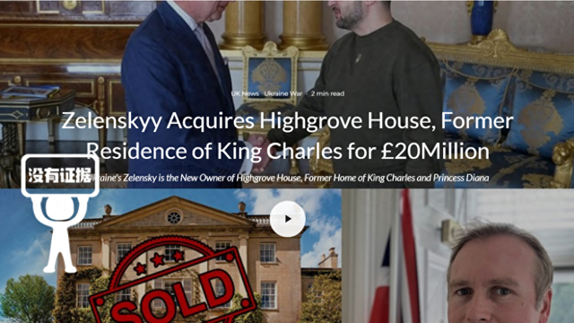 近日,社交平台上有传言称,“据英国媒体爆料,乌克兰总统泽连斯基以2000万英镑从英国国王查尔斯三世手中购入海格罗夫宫,这笔交易已于2024年2月底、3月初完成。”