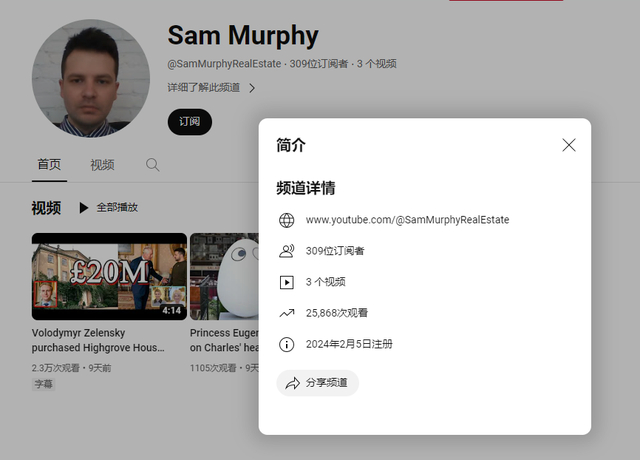 @SamMurphyRealEstate也在今年2月5日刚注册,只发布过3个视频。