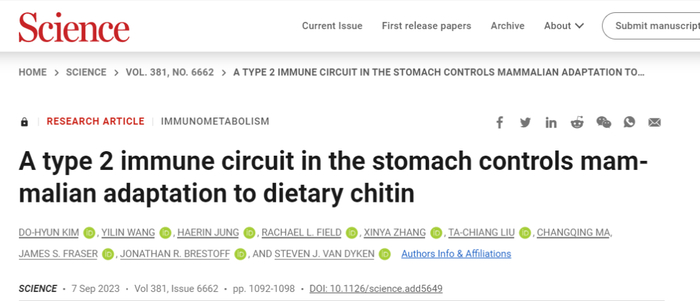 2023 年,美国布法罗大学等机构的科研人员在国际知名学术期刊《科学》(Science)上发表了一篇重要论文。该研究发现,摄入膳食几丁质可以对免疫系统产生显著影响,而这种积极的免疫反应有助于减少体重的增加、降低体脂含量,并增强对肥胖的抵抗力。