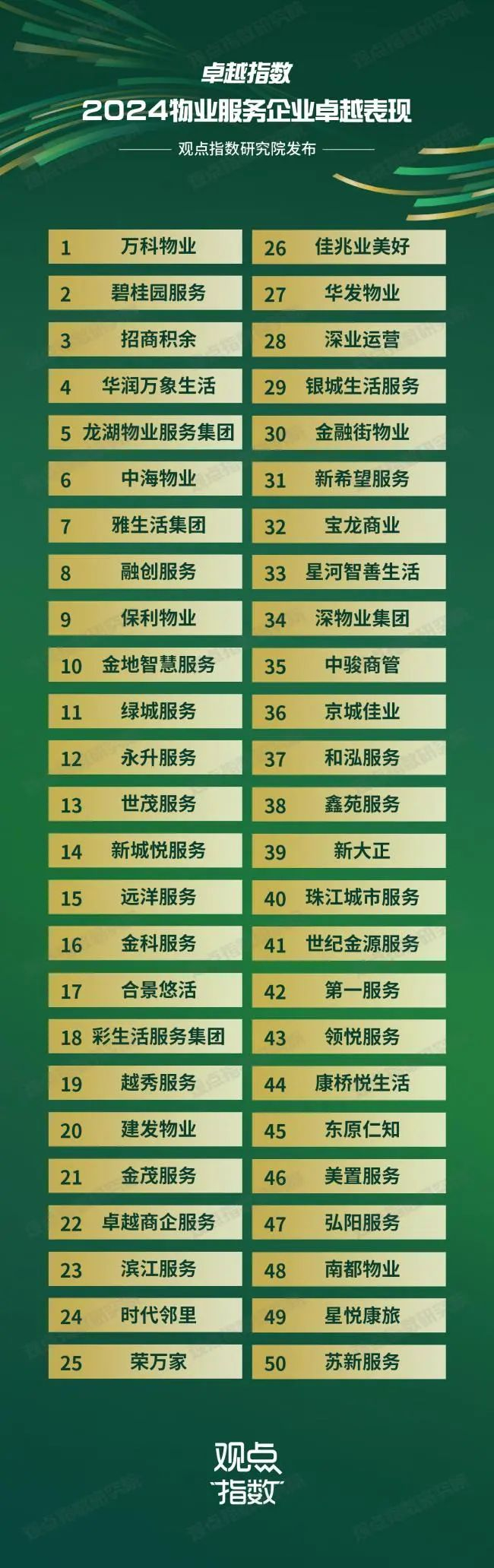 多极赛道发力 万科物业、碧桂园服务、招商积余位列卓越三甲