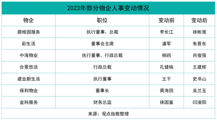 另外,人事变动可以看出企业的战略、业务转型趋势。2023年物企的人事变动主要体现在高管层的更换、创始人退出以及董事、监事的离开等。