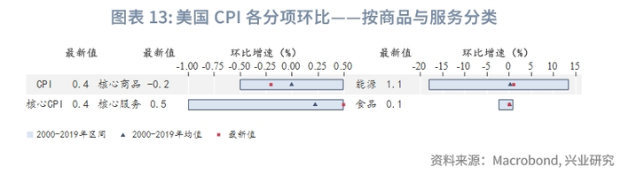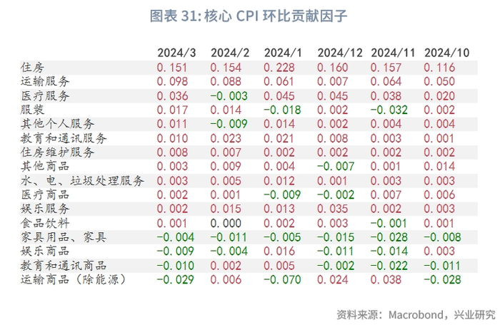 从环比数据看,仅有核心商品环比为负,核心服务环比达到0.5%,能源价格环比达到1.1%。CPI和核心CPI的高环比增速加大了第一季度后同比向3%以下回归的难度。