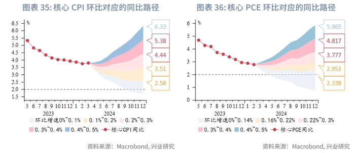 当前市场对于美国去通胀依然持偏乐观态度,根据最新的彭博市场调查和纽约联储1月一级交易商调查,PCE同比预测中位数将持续处于2.5%以下,预测75分位数也仅2.6%左右;CPI同比预测中位数和75分位数都呈现趋势下行,在今年第一季度后低于3%。然而目前PPM高达99.1%,且显示下半年PCE高于2.5%的概率将飙升。鉴于PPM>90%后对于预测通胀的高胜率,需要高度警惕下半年通胀超预期回升的风险。