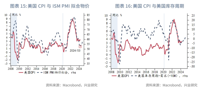 从3月CPI数据看,美国去通胀进程陷入停滞,核心通胀压力不再主要存在于住房市场,开始呈现出广泛的粘性。PMI物价调查和库存周期均指向通胀同比在第一季度筑底,此后有较大的反弹风险。