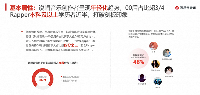 如今说唱已经成为了主流的音乐类型,《中文说唱音乐报告2022》显示,说唱音乐创作者中00后比例超3/4,在年轻人旺盛的表达欲于说唱中得到释放的同时,不能忘了说唱本身是一种艺术,它并不只有语言上的表达,还关乎节奏、韵律、思想等方面。