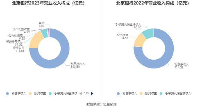 数据统计显示,北京银行近三年营业总收入复合增长率为1.24%,在城商行Ⅲ行业已披露2023年数据的5家公司中排名第3。近三年净利润复合年增长率为6.05%,排名3/5。