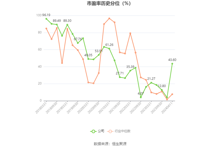 市盈率为负时,不显示当期分位数,会导致折线图中断。