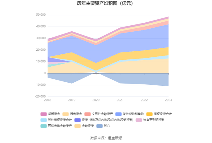 资产重大变化方面,截至2023年年末,公司其他债权投资合计较上年末增加67.49%,占公司总资产比重上升2.48个百分点;债权投资合计较上年末增加1.70%,占公司总资产比重下降1.61个百分点;发放贷款和垫款较上年末增加12.33%,占公司总资产比重上升0.78个百分点;金融投资较上年末增加13.18%,占公司总资产比重上升0.76个百分点。