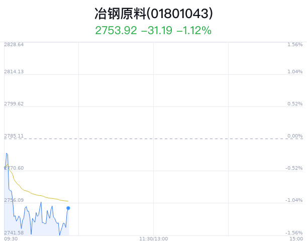 04月12日,冶钢原料行业盘中拉升,截至10点22分,冶钢原料行业整体指数上涨0.54%,报2753.920点。