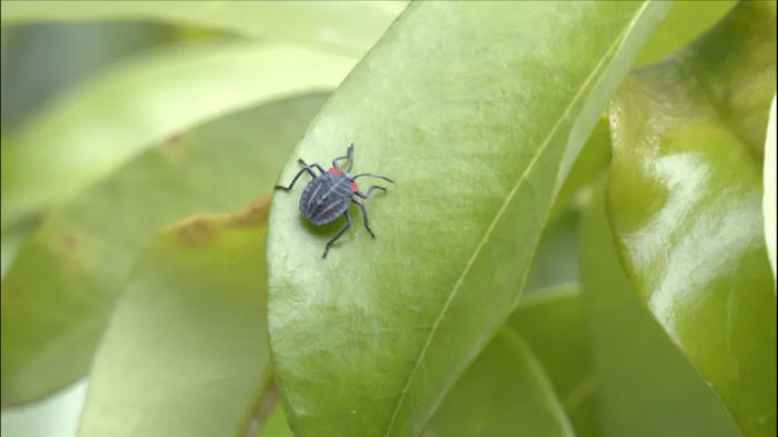 荔蝽最有力的防身武器就是它头部的腺体,能分泌喷射出恶臭的毒液或毒气,沾染植物、水果或叶片后都会留下臭味,闻之令人作呕,故而得“臭屁虫”的大名。