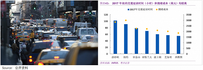 然而,这些城市的拥堵程度,远超预期。以纽约为例,2017年平均每位司机的堵车时间,高达100小时。