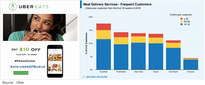 可以看到,即使Uber Eats洒出铺天盖地的补贴,依然抢不走GrubHub上的高频用户。