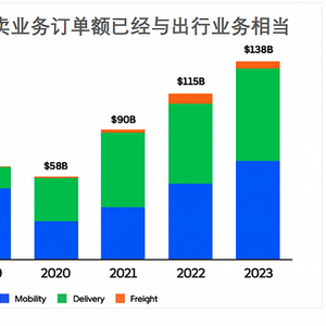 当时,Uber外卖业务体量正式超过了网约车业务,并一定程度上抵消了后者的下滑,让Uber业绩相比Lyft等同行更抗跌。