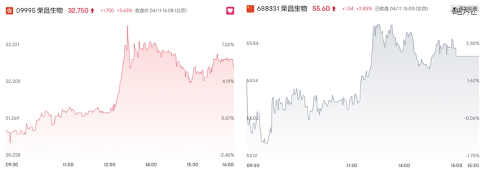 但从4月11日荣昌生物AH的股价表现看,似乎对短期情绪有所提振,但强度不高。