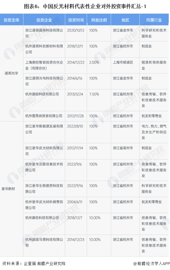 反光材料产业代表性企业最新投资动向