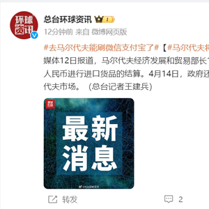 据央视新闻,马尔代夫媒体4月12日报道,马尔代夫经济发展和贸易部部长11日表示,马尔代夫将很快可以用人民币进行进口货品的结算。总台环球资讯报道,4月14日,政府还将正式宣布支付宝和微信进入马尔代夫市场。