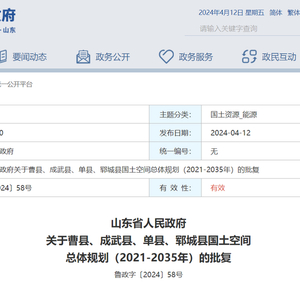日前,山东省政府批复同意曹县国土空间总体规划(2021-2035年)》《成武县国土空间总体规划(2021-2035年)》《单县国土空间总体规划(2021-2035年)》《郓城县国土空间总体规划(2021-2035年)》(以下简称《规划》)。