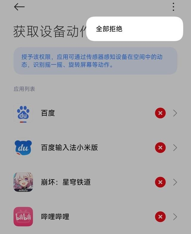 设置-搜索“摇一摇”-获取设备动作和方向-右上角三个点-全部拒绝