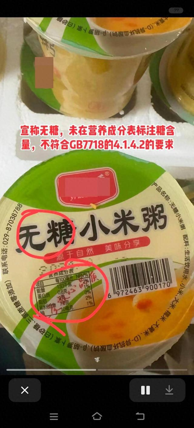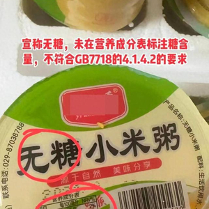 扬子晚报网4月12日讯(通讯员 潘其兵 记者 朱鼎兆)号称是无糖食品,但是营养成分表中碳水化合物含量却高达7克,远超无糖标准的14倍。近日,淮安市淮阴区市场监管局长江路分局接多起投诉举报,反映其购买的“无糖小米粥”等食品,虚假宣传误导消费者。