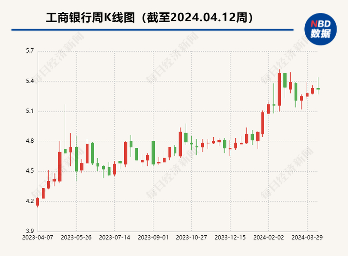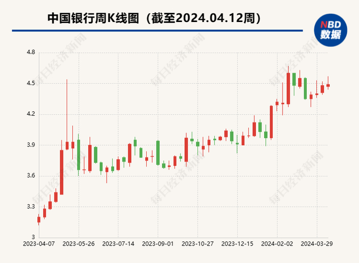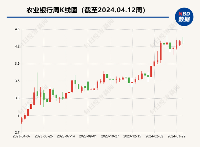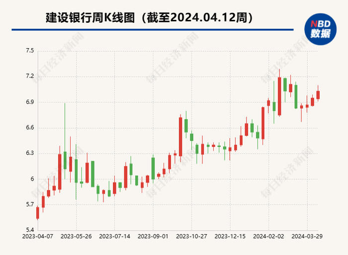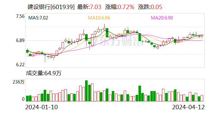 建设银行2023年10月11日收于6.34,2024年4月10日收于7.03,期间涨幅约12.46%;农业银行2023年10月11日收于3.65,2024年4月10日收于4.29,期间涨幅约17.53%;中国银行2023年10月11日收于3.77,2024年4月10日收于4.50,期间涨幅约19.36%;工商银行2023年10月11日收于4.72,2024年4月10日收于5.34,期间涨幅约13.14%。