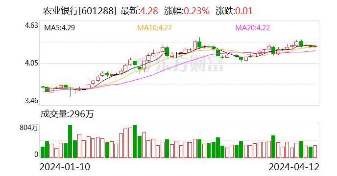 农业银行方面,中央汇金公司通过上海证券交易所交易系统累计增持农业银行A股股份4.01亿股,约占该行总股本的0.11%;中央汇金公司共持有该行A股股份1404.89亿股,约占该行总股本的40.14%。