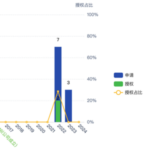 截止最新,国信蓝盾共有10件公开申请专利,均为发明专利,专利申请量集中在近两年,2022年为7件,2023年为3件,审中专利占比80%,近期创新活力较好。