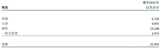 截至2023年12月31日,理想汽车一共有31591人,其中,理想汽车研发人员数量为6726人,生产人员为9551人,销售人员有12340人,一般及管理人员有2974人。