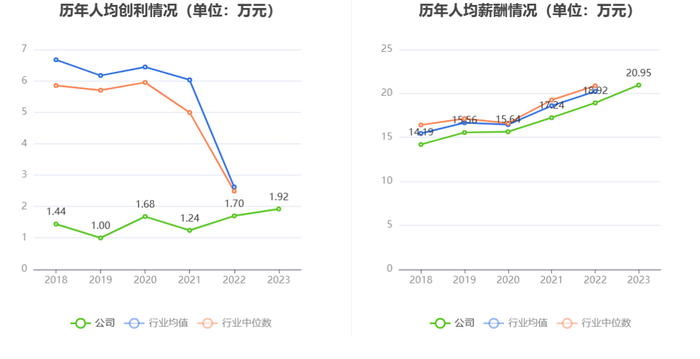 截至2023年末,公司员工总数为8103人,人均创收112.77万元,人均创利1.92万元,人均薪酬20.95万元,较上年同期分别增长5.96%、12.92%、10.73%。
