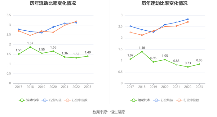 2023年,公司流动比率为1.40,速动比率为0.85。