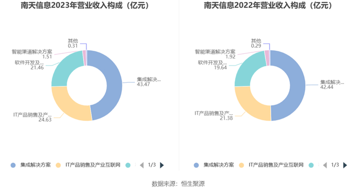 分产品看,集成解决方案、IT产品销售及产业互联网、软件开发及服务2023年毛利率分别为5.67%、5.99%、34.55%。