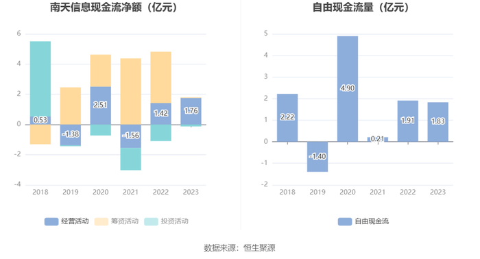 进一步统计发现,2023年公司自由现金流为1.83亿元,相比上年同期下降4.25%。