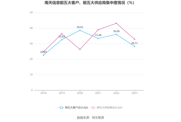 报告期内,公司前五大客户合计销售金额25.88亿元,占总销售金额比例为28.31%,公司前五名供应商合计采购金额31.93亿元,占年度采购总额比例为32.93%。