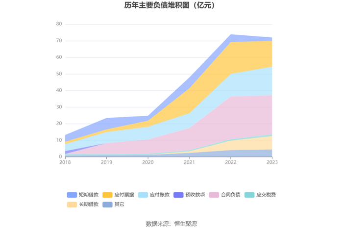 负债重大变化方面,截至2023年年末,公司应付账款较上年末增加26.32%,占公司总资产比重上升3.65个百分点;应付票据较上年末减少18.57%,占公司总资产比重下降3.57个百分点;短期借款较上年末减少57.82%,占公司总资产比重下降2.73个百分点;长期借款较上年末增加40.90%,占公司总资产比重上升2.39个百分点。