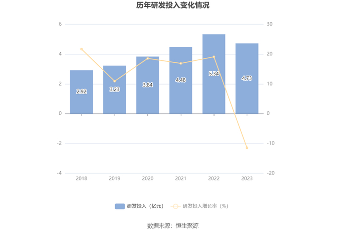 2023年全年,公司研发投入金额为4.73亿元,同比下降11.45%;研发投入占营业收入比例为5.18%,相比上年同期下降1.05个百分点。此外,公司全年研发投入资本化率为3.62%。