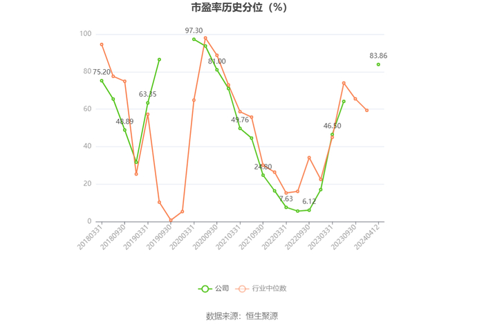 市盈率为负时,不显示当期分位数,会导致折线图中断。