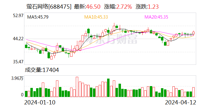 同一时间,萤石网络还发布了2024年第一季度报告,公司一季度实现营业收入12.37亿元,同比增长14.61%;净利润1.25亿元,同比增长37.38%;基本每股收益0.22元。