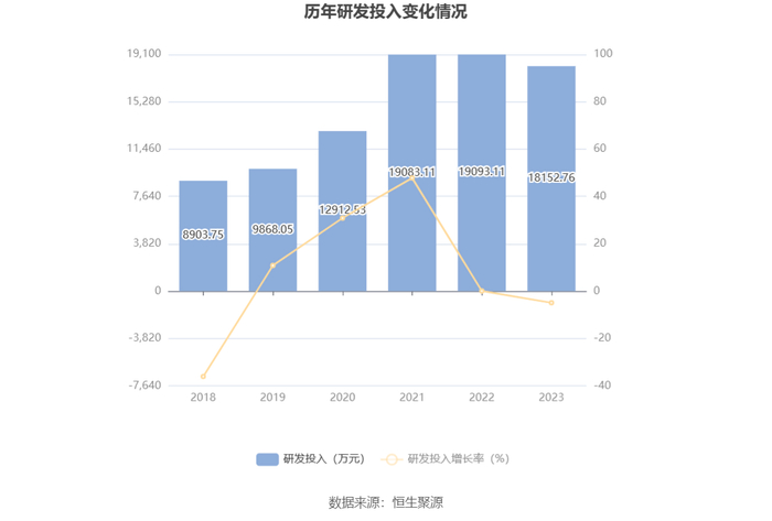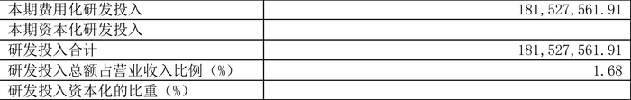 2023年全年,公司研发投入金额为1.82亿元,同比下降4.93%;研发投入占营业收入比例为1.68%,相比上年同期上升0.43个百分点。此外,公司全年研发投入资本化率为0。