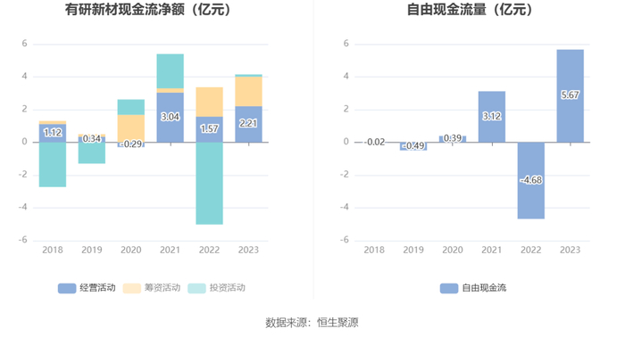 进一步统计发现,2023年公司自由现金流为5.67亿元,上年同期为-4.68亿元。