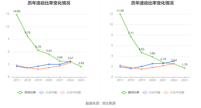 2023年,公司流动比率为2.49,速动比率为1.70。