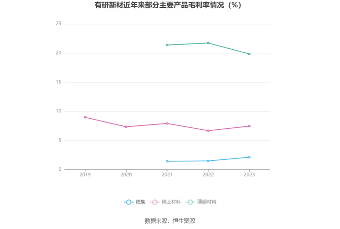 分产品看,铂族、稀土材料、薄膜材料2023年毛利率分别为2.11%、7.45%、19.84%。